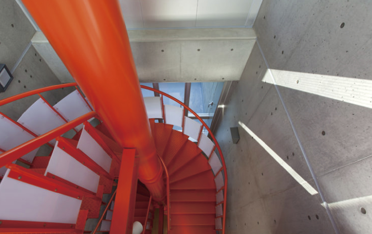 室内は、広がりを感じられるワンフロア設計とし、コンクリートの硬質さにやわらかな色味や素材を組み合わせることで、落ち着きと快適さを両立。印象的な螺旋階段は、機能性だけでなく空間のアクセントとして住まい全体の個性を際立たせています。耐久性・断熱性・遮音性にも配慮し、長く安心して暮らせる住まいに仕上げました。